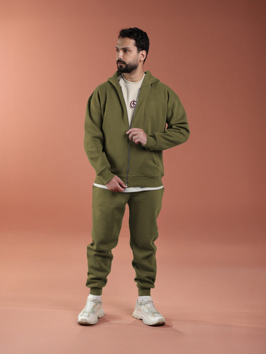 هودي اوفرسايزد بسحاب باللون اخضر زيتوني