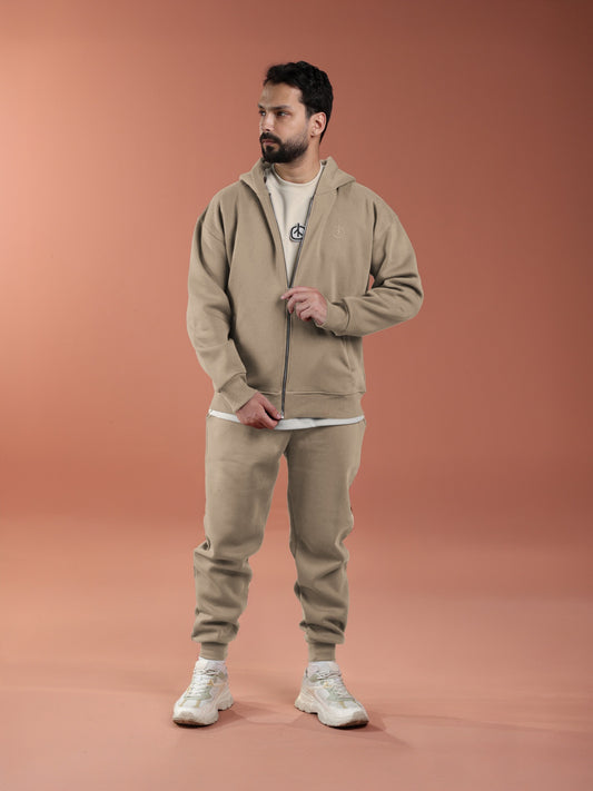 هودي اوفرسايزد بسحاب باللون بيج اداكن