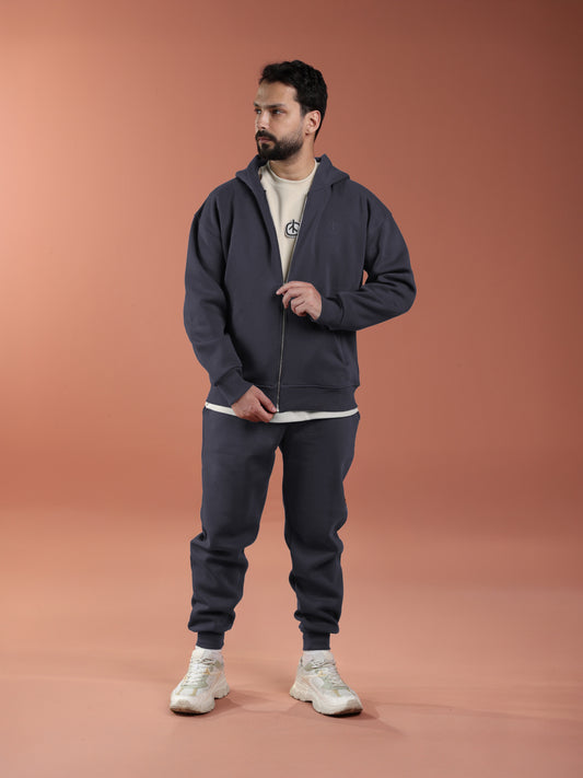 هودي اوفرسايزد بسحاب باللون رمادي معدني