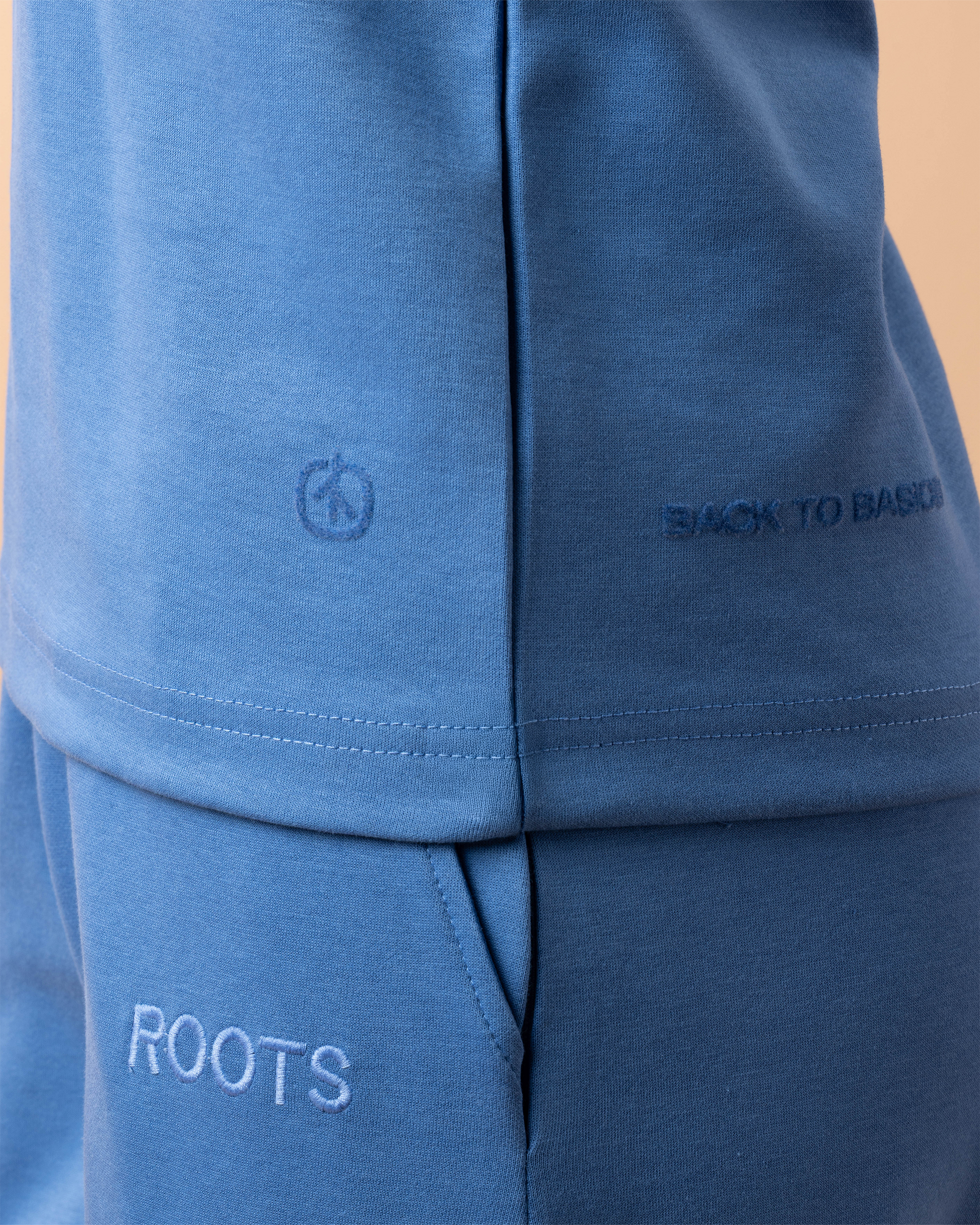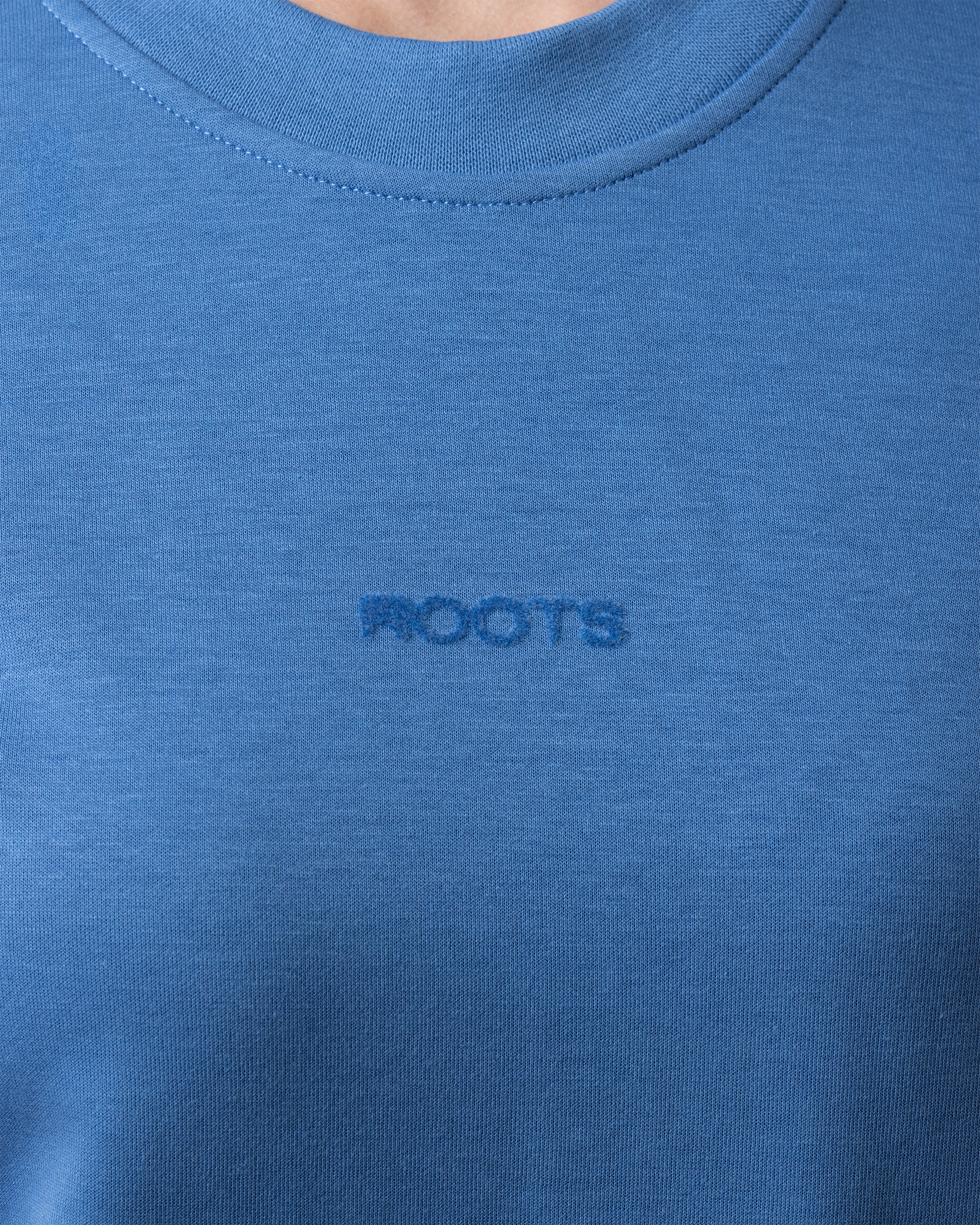 Women’s Azure blue regular fit T-shirt with a velvet printing details on the front and back.